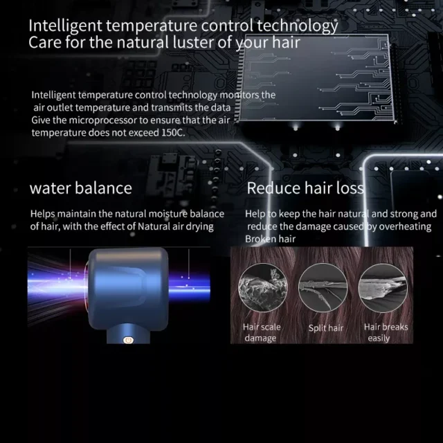 Elevate your hair drying experience with our state-of-the-art leafless personal hair dryer. Not just any hair dryer, this is a game changer. Designed with cutting-edge technology, our hair dryer ensures a quick yet gentle drying, giving your hair the love it deserves.