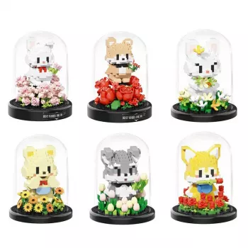 Animal Building Block Set with Dust Cover - Dog, Rabbit, Rose Collection