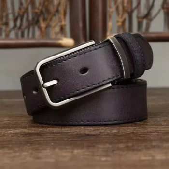 Retro Men’s Genuine Leather Belt with Vintage Pin Buckle