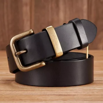 Men’s Genuine Leather Belt with Solid Brass Buckle – 1.5 Inch Wide