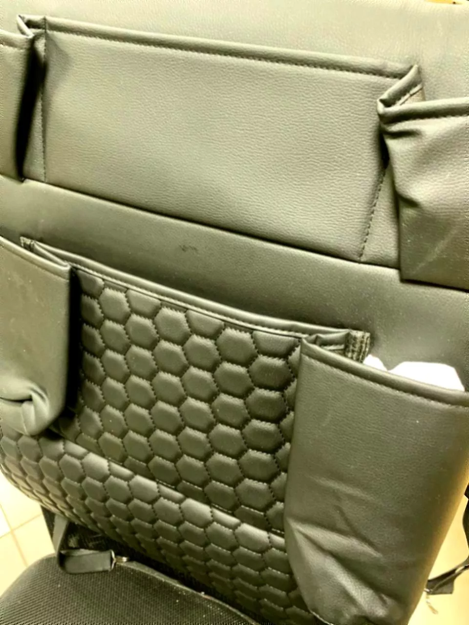 This seat-back organizer is waterproof and easy to clean. Plus it looks stylish with its eco-leather finish.