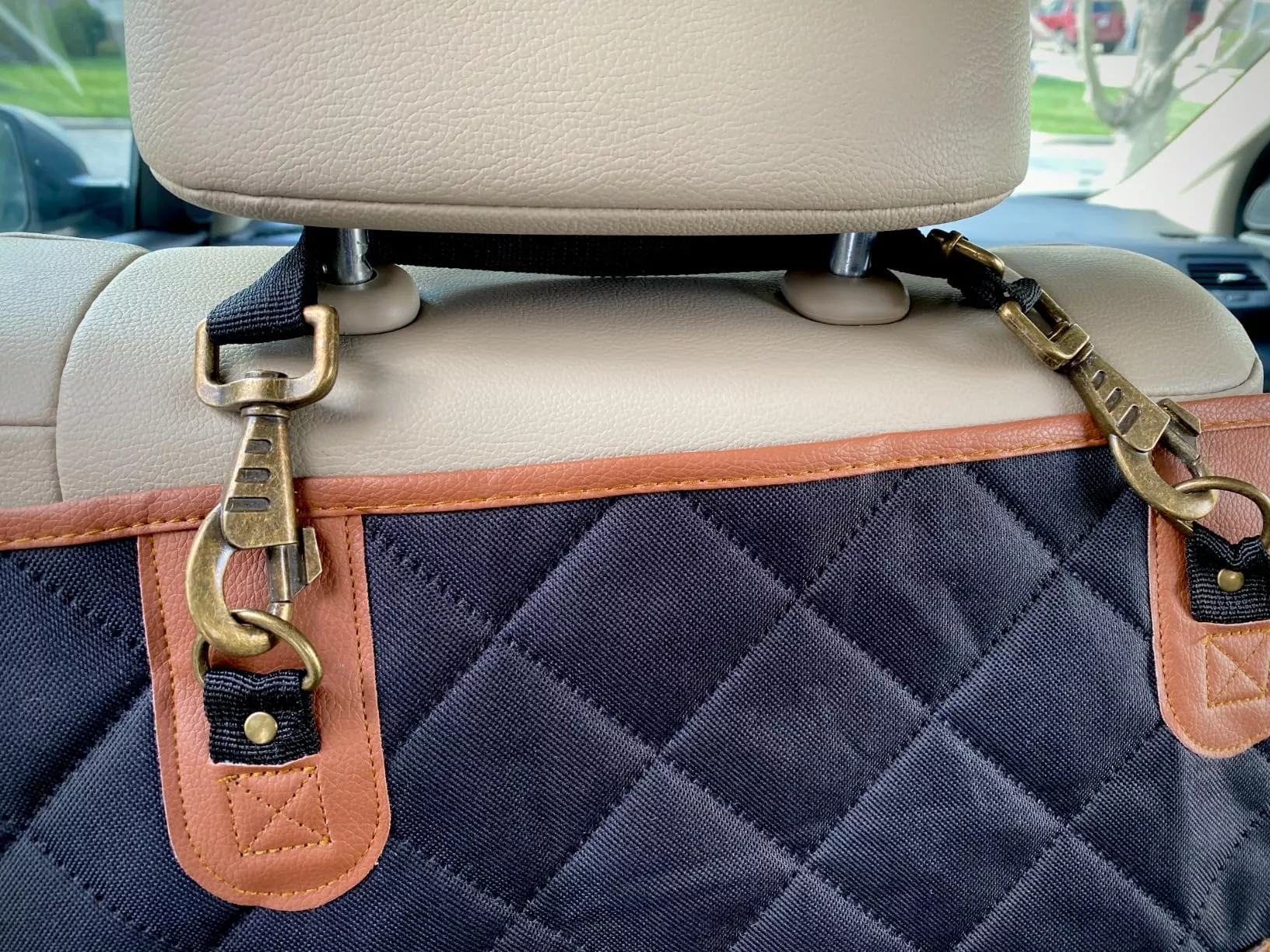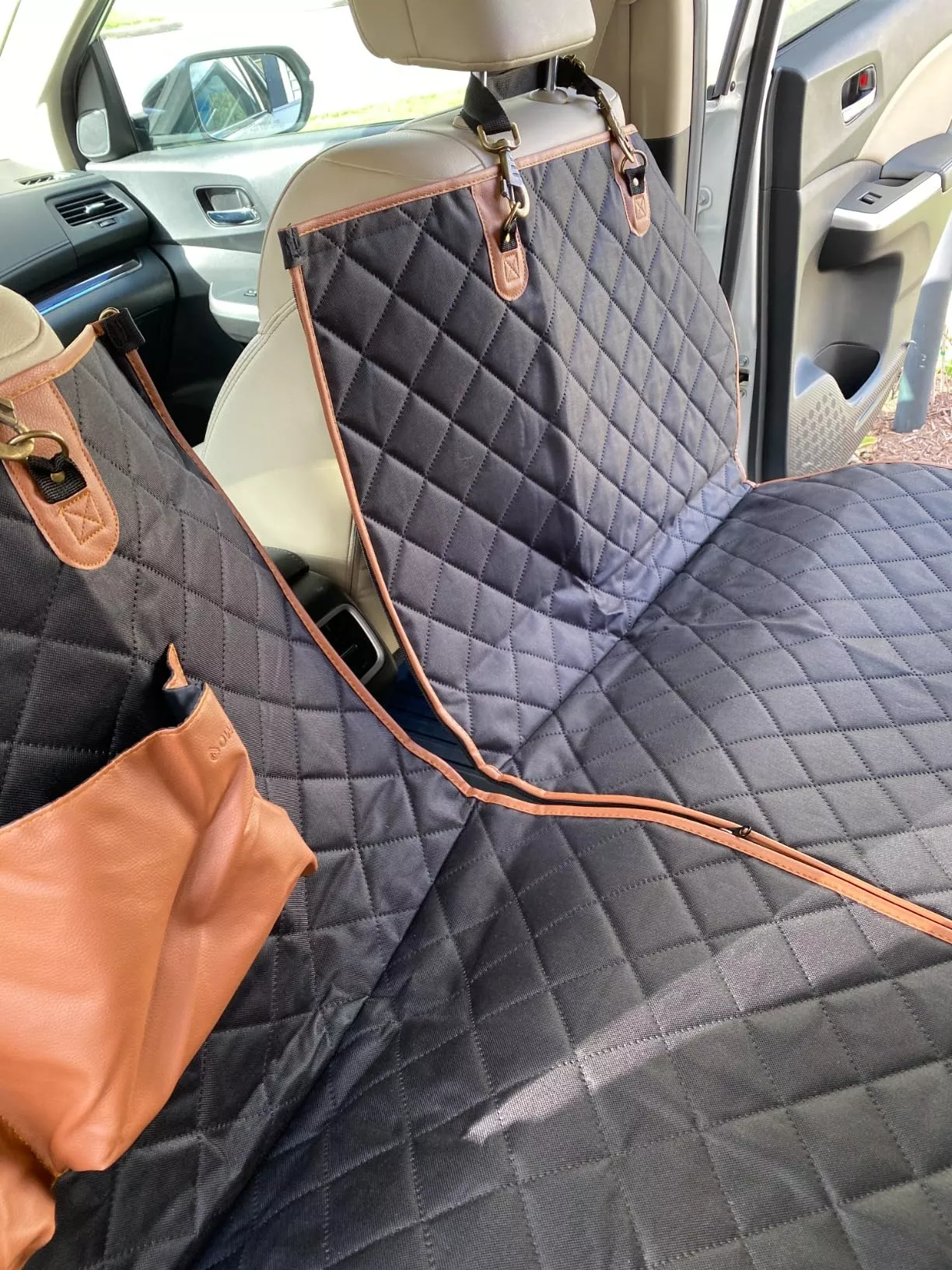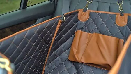 I really love this call protective seat cover it was easy to install and water resistant easy to clean and my dog absolutely loves it Plus it has nice big pockets to put water bottles and collapsible bowl. I would definitely recommend this. It was worth the price.