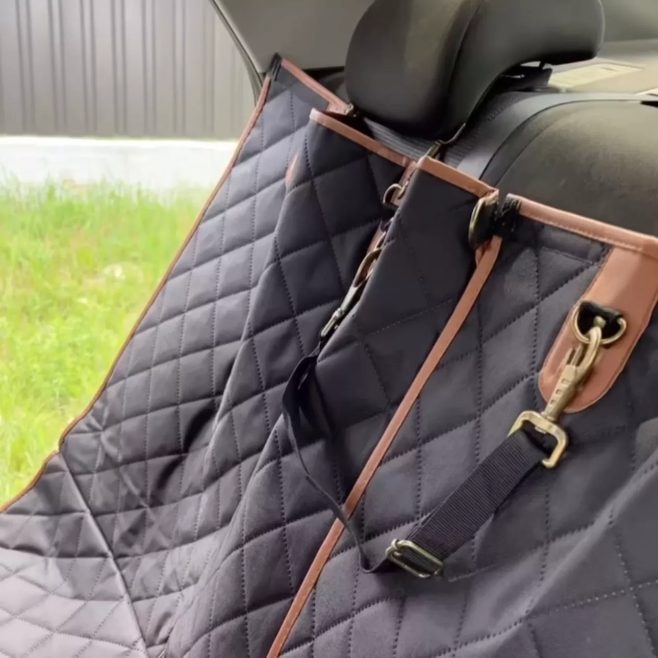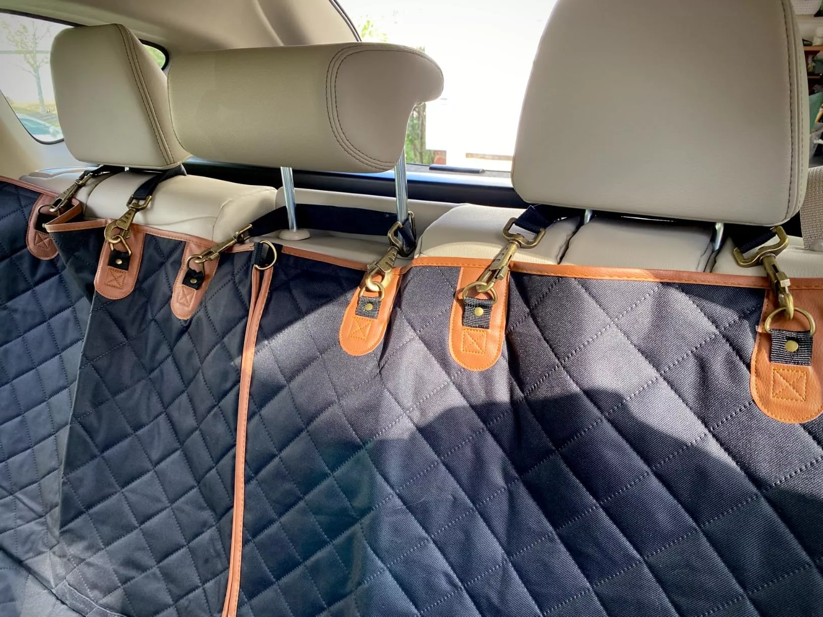 This product exceeded my expectations! It fit perfectly in the back of my Ford Escape, buckled nicely around each headrest, and doesn’t slip and slide when my doggo is hanging out on it. Offers good protection for my car seats and looks sleek too. Highly recommend!