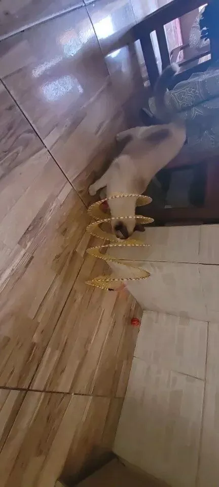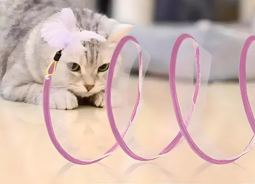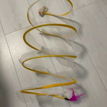 This cat toy surpasses all expectations. Initially purchased for our cats, it has provided endless entertainment for us as well. The thoughtful design incorporates various elements that cats love, from the velvet coil to the jute ball and feathers. It's a hit with our furry friends, and we highly recommend it.