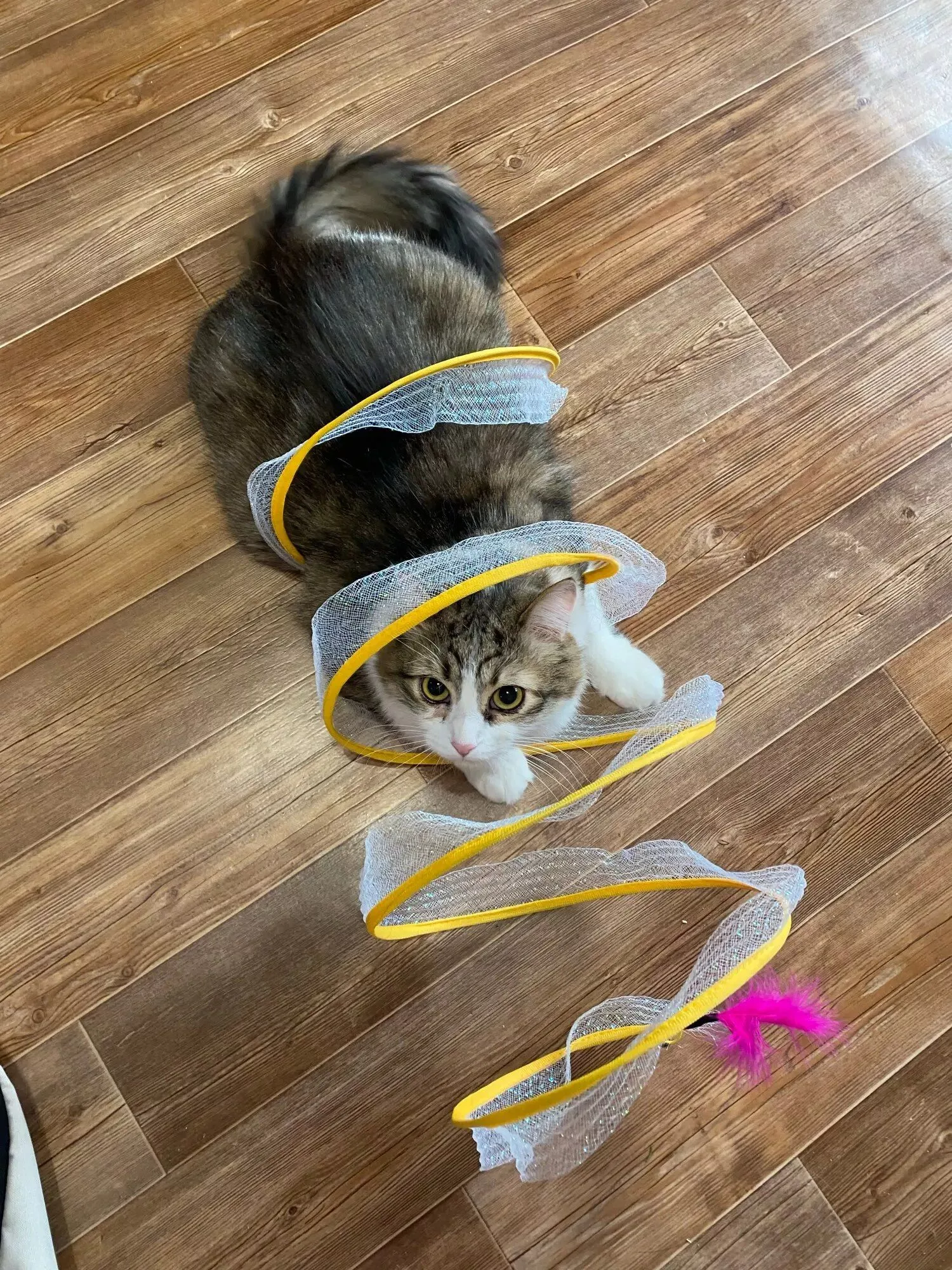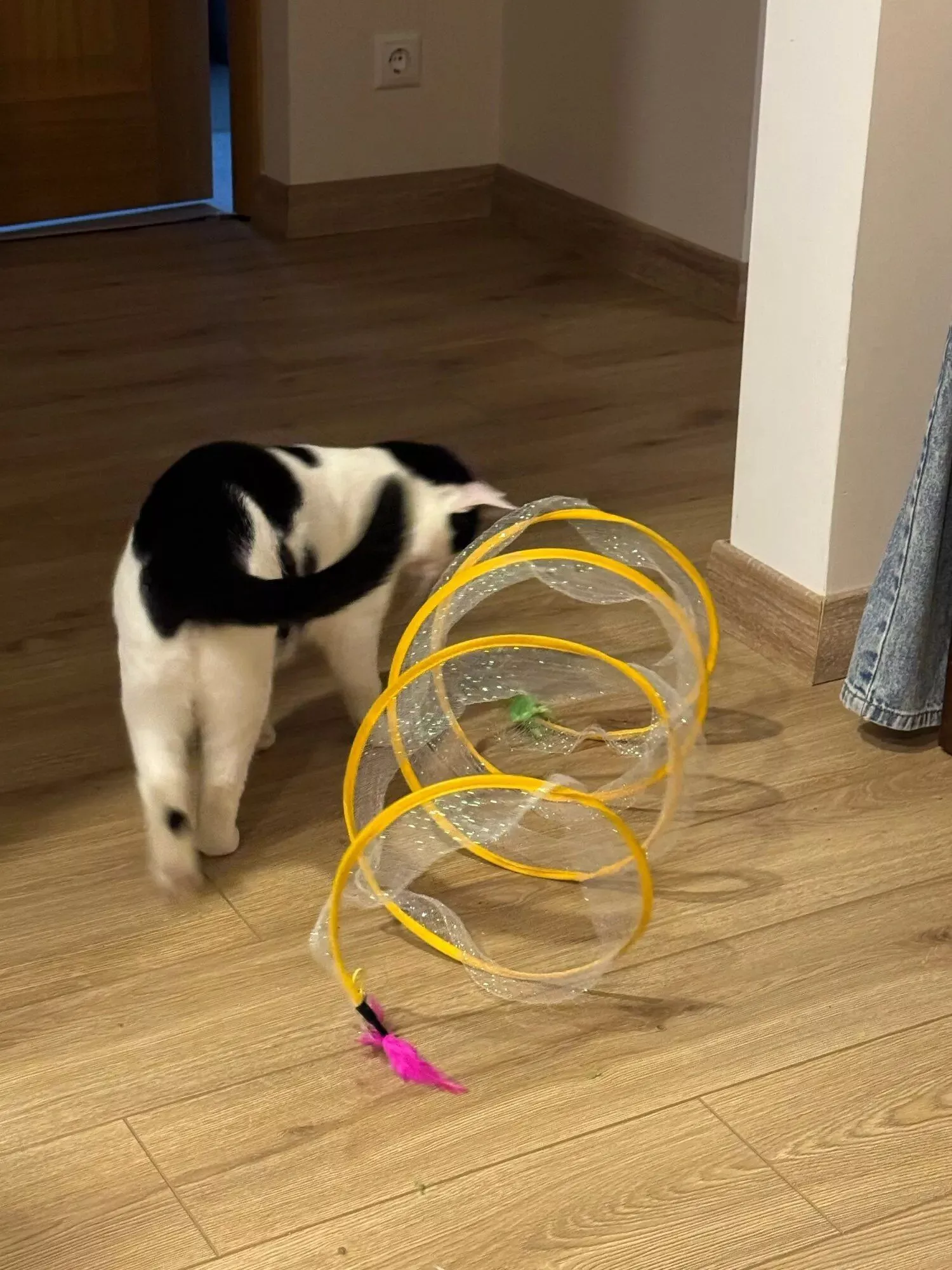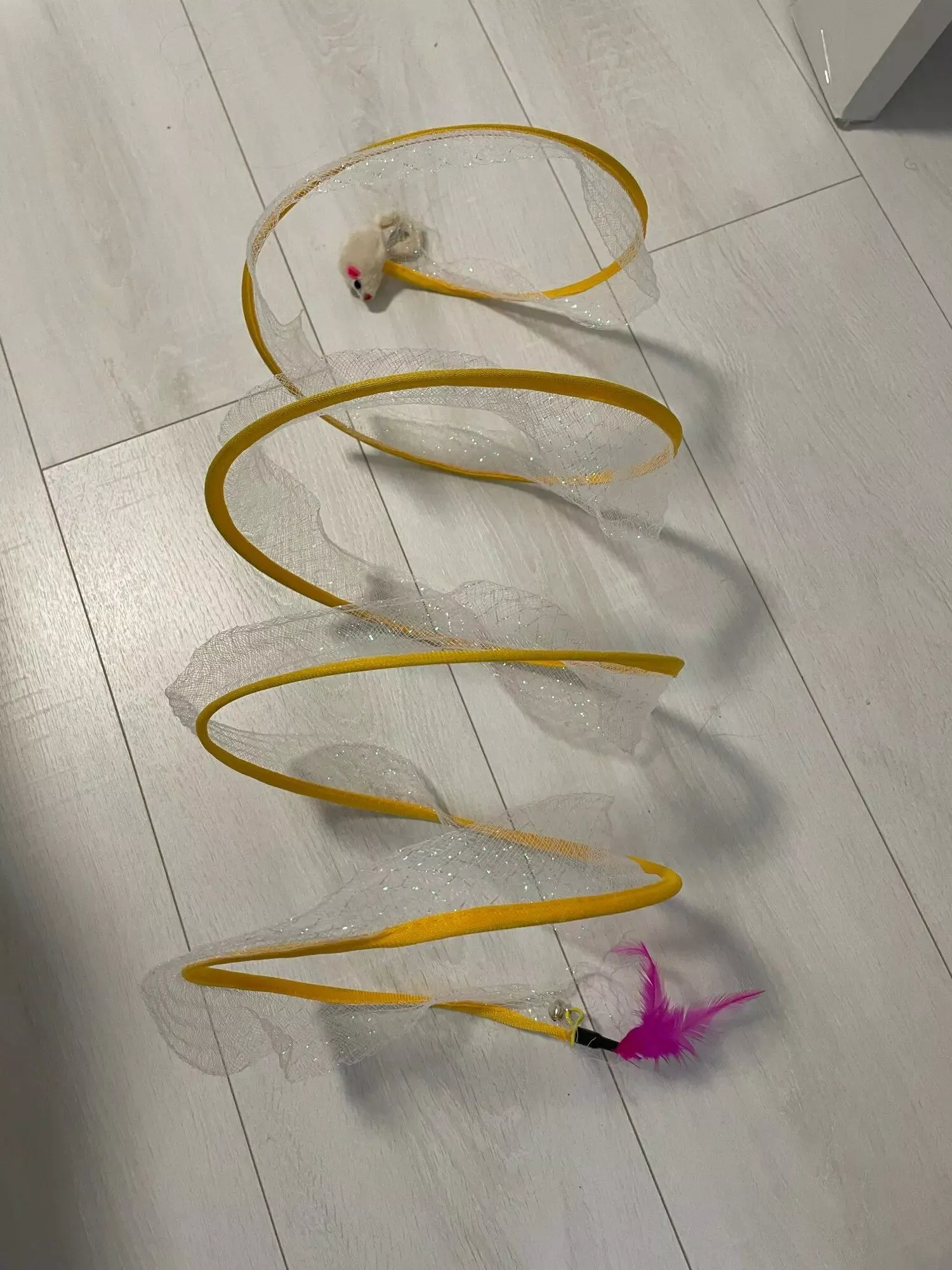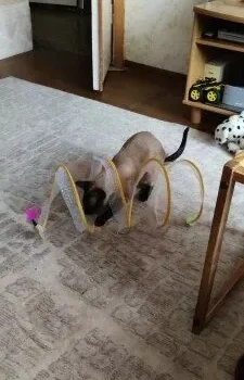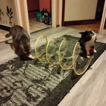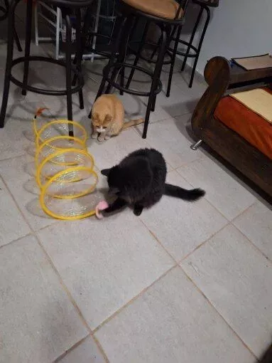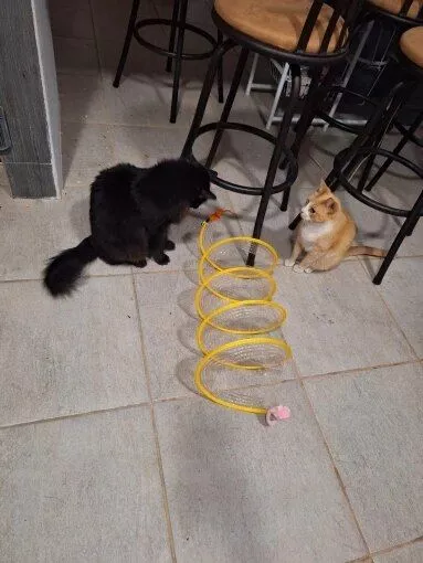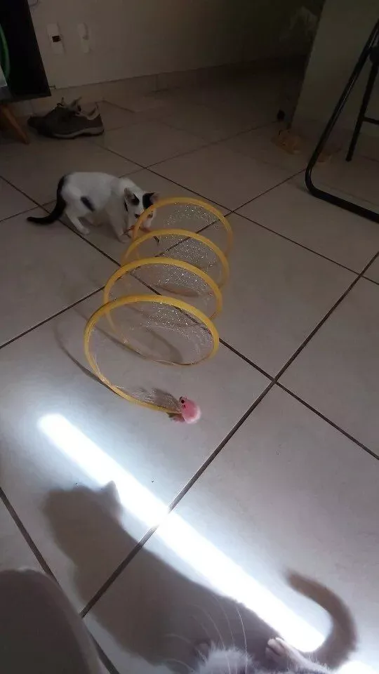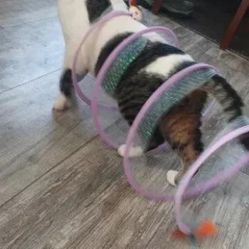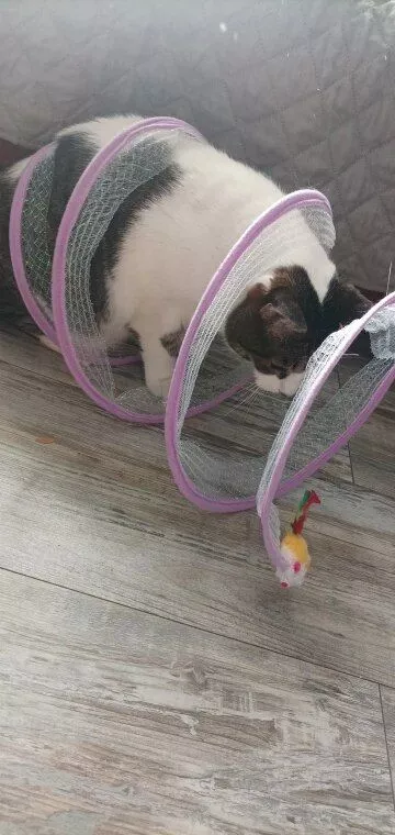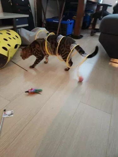 Although my cats were initially hesitant, they eventually warmed up to this toy, particularly enjoying the bell toys on the ends. Now, they use it as intended, running through it with enthusiasm.