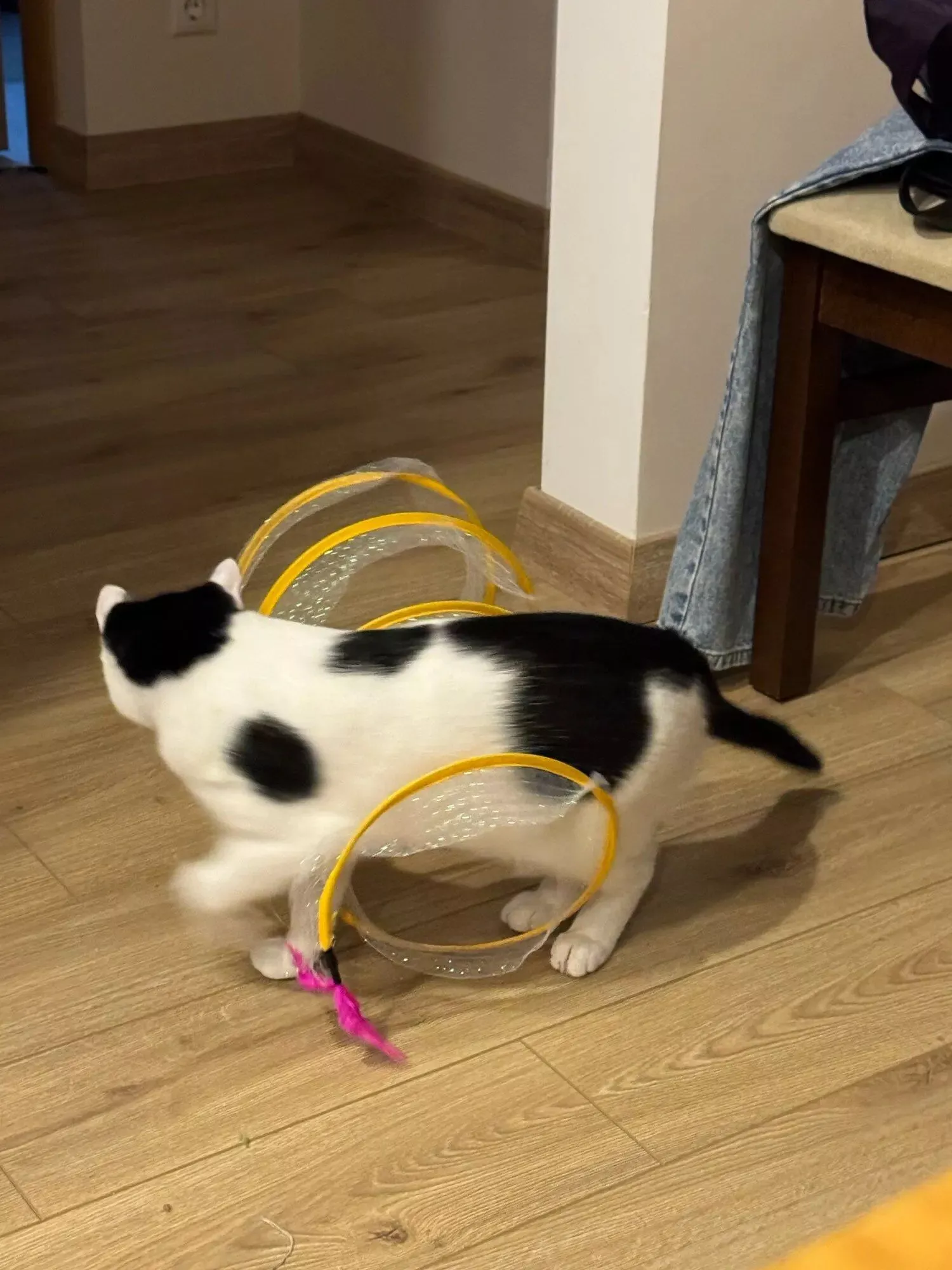Our kitten likes to play with the toys. Within 1 night she had already got a feather loose.🙈