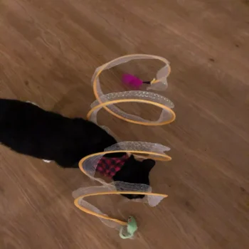 Walter, our cat, has been thoroughly intrigued by this open spiral tunnel, offering him a new source of entertainment.
