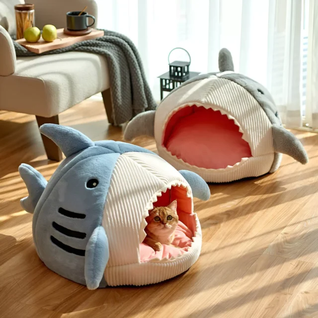 Transform your pet’s sleeping experience with the Cozy Cartoon Shark Cat Bed! This adorable shark-shaped cave bed is perfect for cats and small dogs, providing a warm and inviting space for your furry friend to snuggle up and relax. Made with 100% cotton, this bed combines comfort with a fun design that will look great in any room of your home.