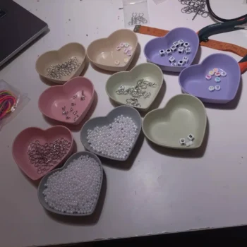 Adorable and versatile, these dishes are ideal for serving dips or organizing small items; their unique shape adds a playful touch to any table setting. These heart shaped dishes are great for holding small objects like jewelry, beads, or change. I will be using them to hold acetone and rhinestones for doing my nails. I love them!