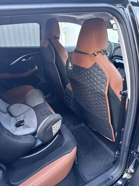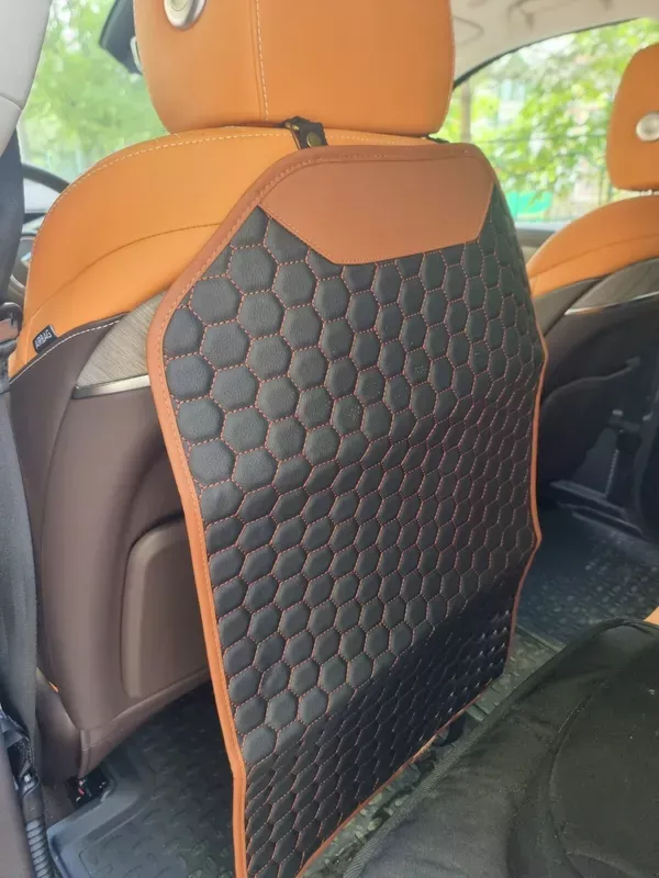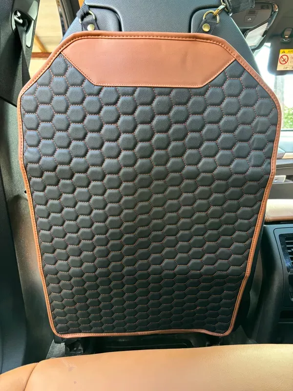 This car seat back protector has been a game-changer for us. Not only does it protect our seats from the kids' dirty shoes, but its premium eco-leather material also adds an element of sophistication to our car's interior. The non-slip bottom is another feature we love; no more constant adjusting or worrying about it slipping off!