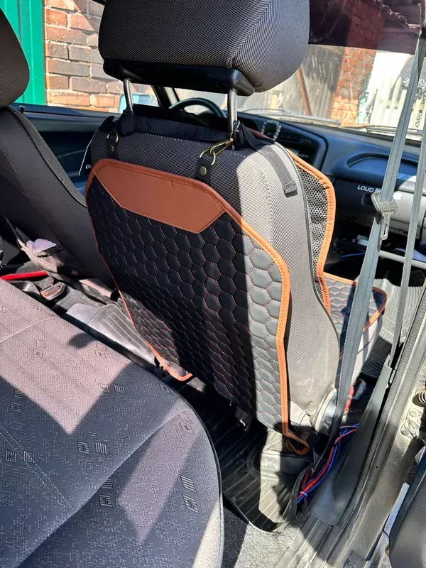This product exceeded all my expectations! Firstly, installation was incredibly simple and fast - just hook onto your seat backs and you're done! Secondly, the quality of materials used are top-notch; from its sturdy metal hooks that keep everything secure against constant kicking and movement, right down to its high-grade eco-leather surface that's effortlessly stylish yet practical.