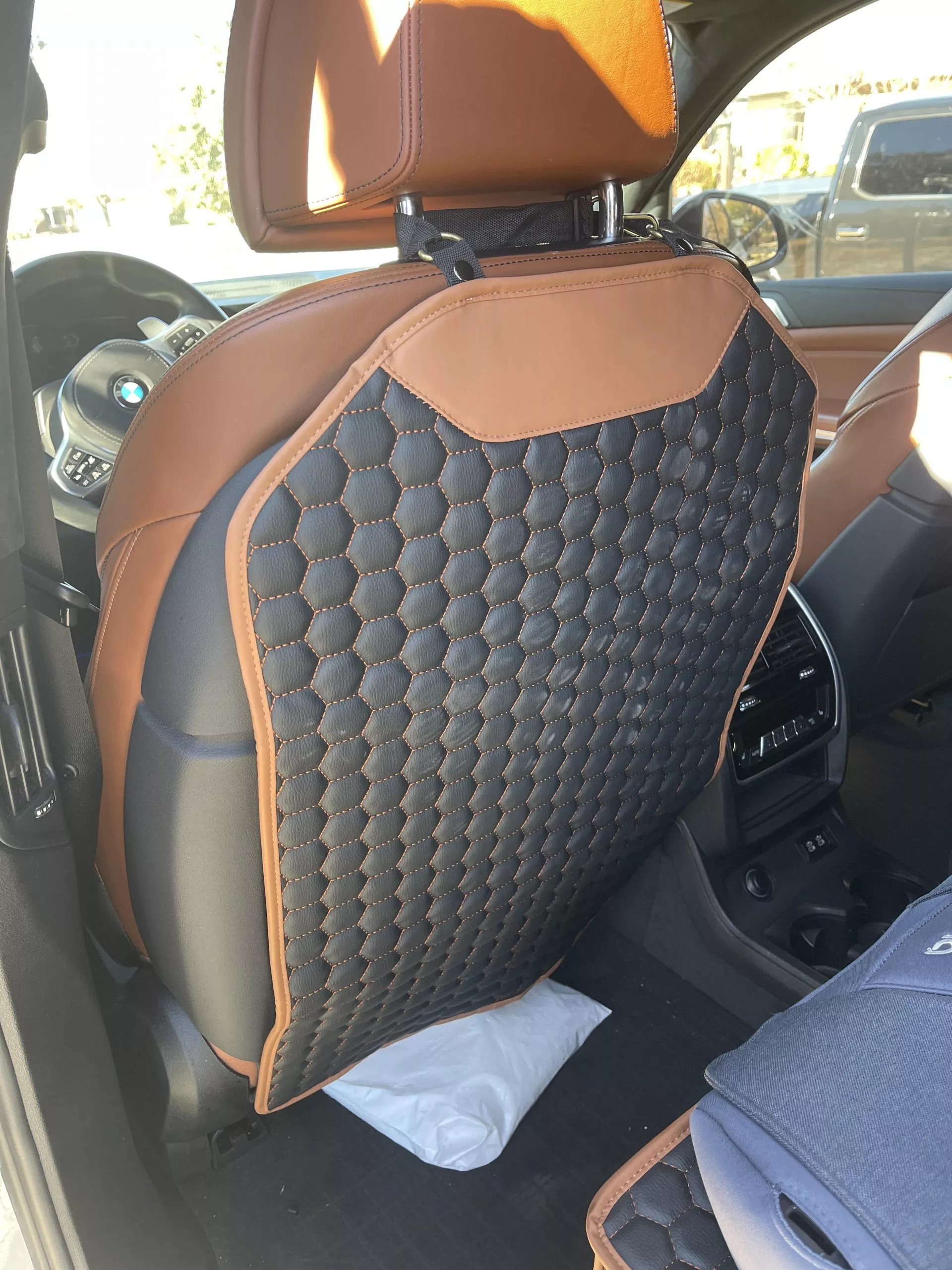i’m so pleased with these kick mats. the eco leather is soft to the touch yet incredibly durable. my car seats were constantly getting dirty from my kids’ shoes, but these mats have kept them clean and scratch-free. they were very easy to install and they fit perfectly. the mats stay in place and don’t shift around, which is a big plus. cleaning them is super easy, just a quick wipe and they’re good as new. these kick mats are stylish and functional, making them a great investment for anyone looking to protect their car’s interior. highly recommend them.