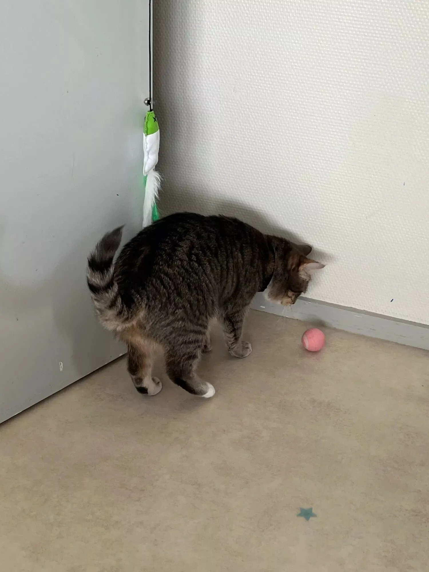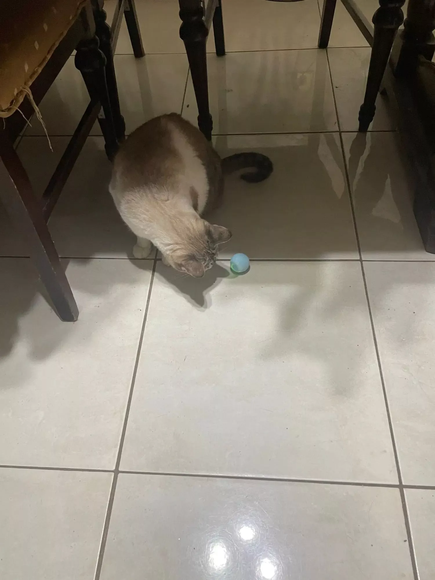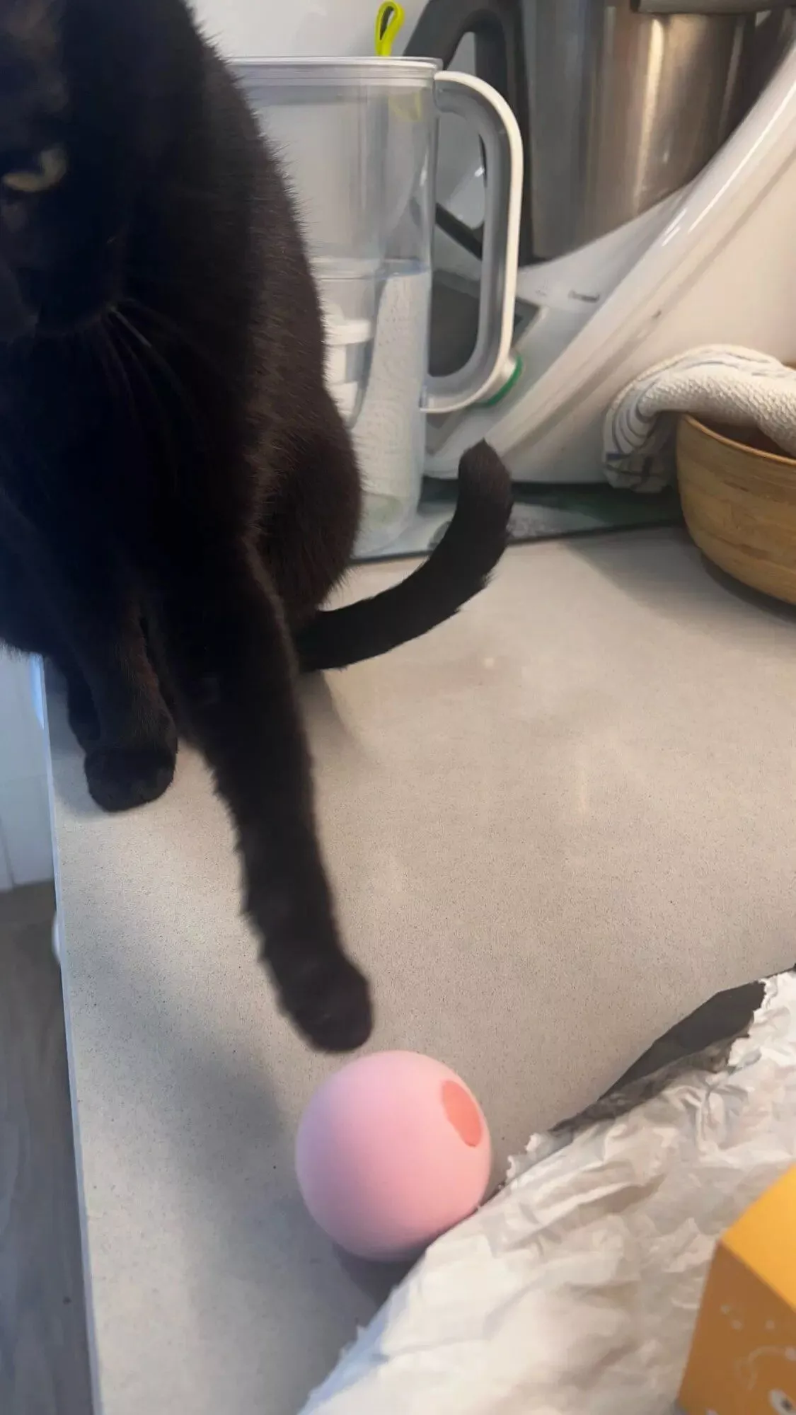 It's okay, the cat doesn't play with him much but it chases him and looks at him while he rolls when I throw it at him, but at night if I notice that he makes him roll, I have bought 2 different ones and this one has the failure that the stretch marks are in the same direction of the turn and often skids without advancing while the other one is in another direction and flies off. Anyway right Product👍