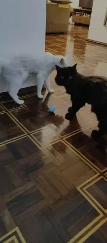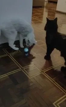Initially, my cats were a bit startled by the ball's self-rolling antics, but once they got used to it, they had a blast playing with it. Unfortunately, it took an unintended journey down the stairs and is now missing in action. Hopefully, we'll locate it soon.