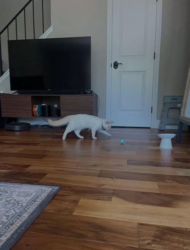 While the toy appears well-made and functional, our cats were too apprehensive to fully enjoy it. It rolled smoothly on hard floors but struggled on rugs, occasionally bouncing, which piqued the cats' curiosity, though they ultimately decided it wasn't their cup of tea.
