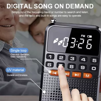 Portable FM Radio Bluetooth Speaker with TF Card Slot, LED Flashlight, and Rechargeable Battery