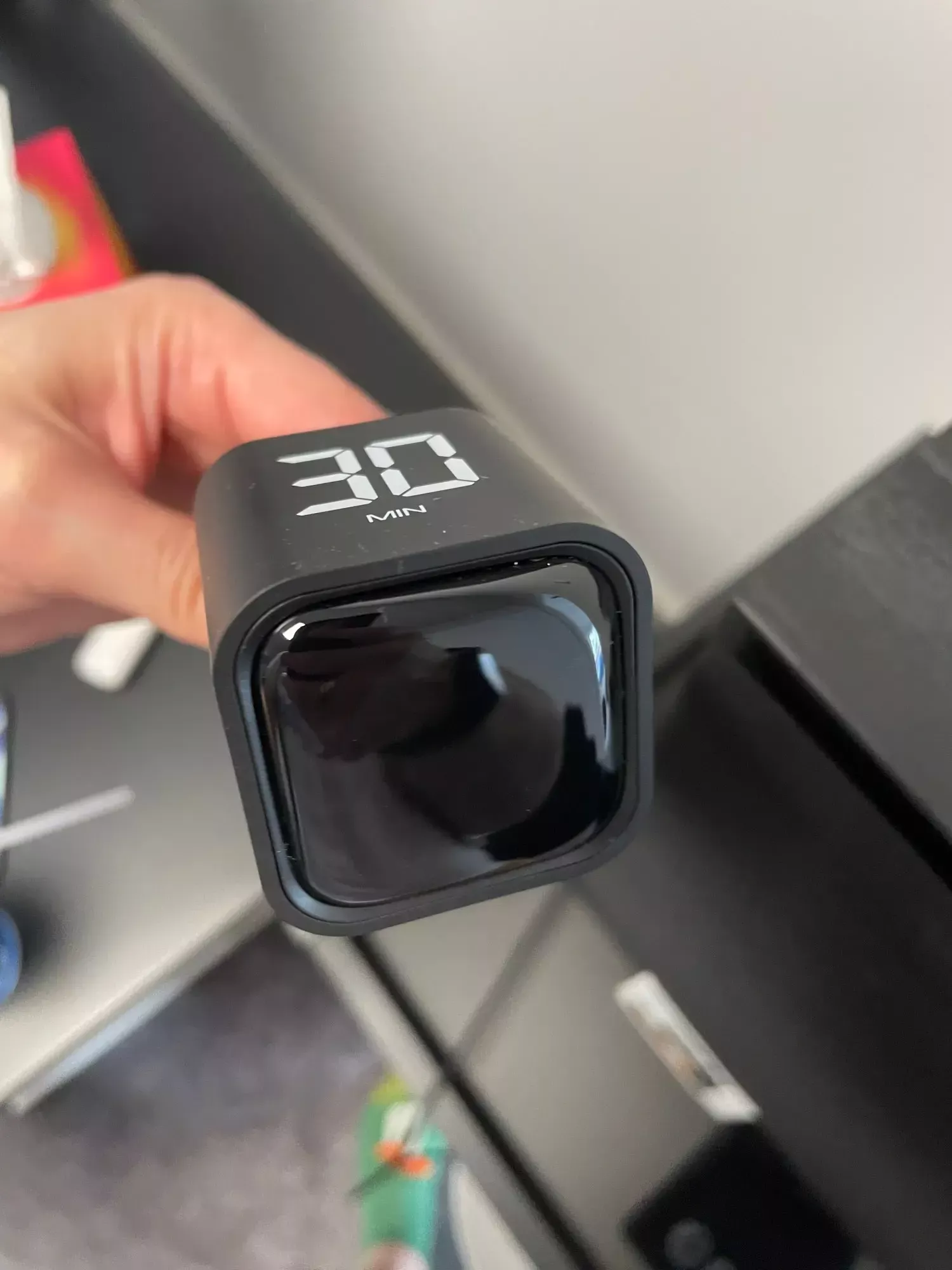 using this timer has been a great experience. the gravity sensor is such a clever idea; it makes setting the timer quick and effortless. the LED display is clear and easy to read, even from across the room. i've been using it for work, study sessions, and even cooking. it's lightweight and portable, so i can easily move it around the house. the battery life is excellent, and i love that it's rechargeable. the timer has really helped me stay focused and productive throughout the day. it's a simple yet effective tool that i'd recommend to anyone looking to manage their time better.