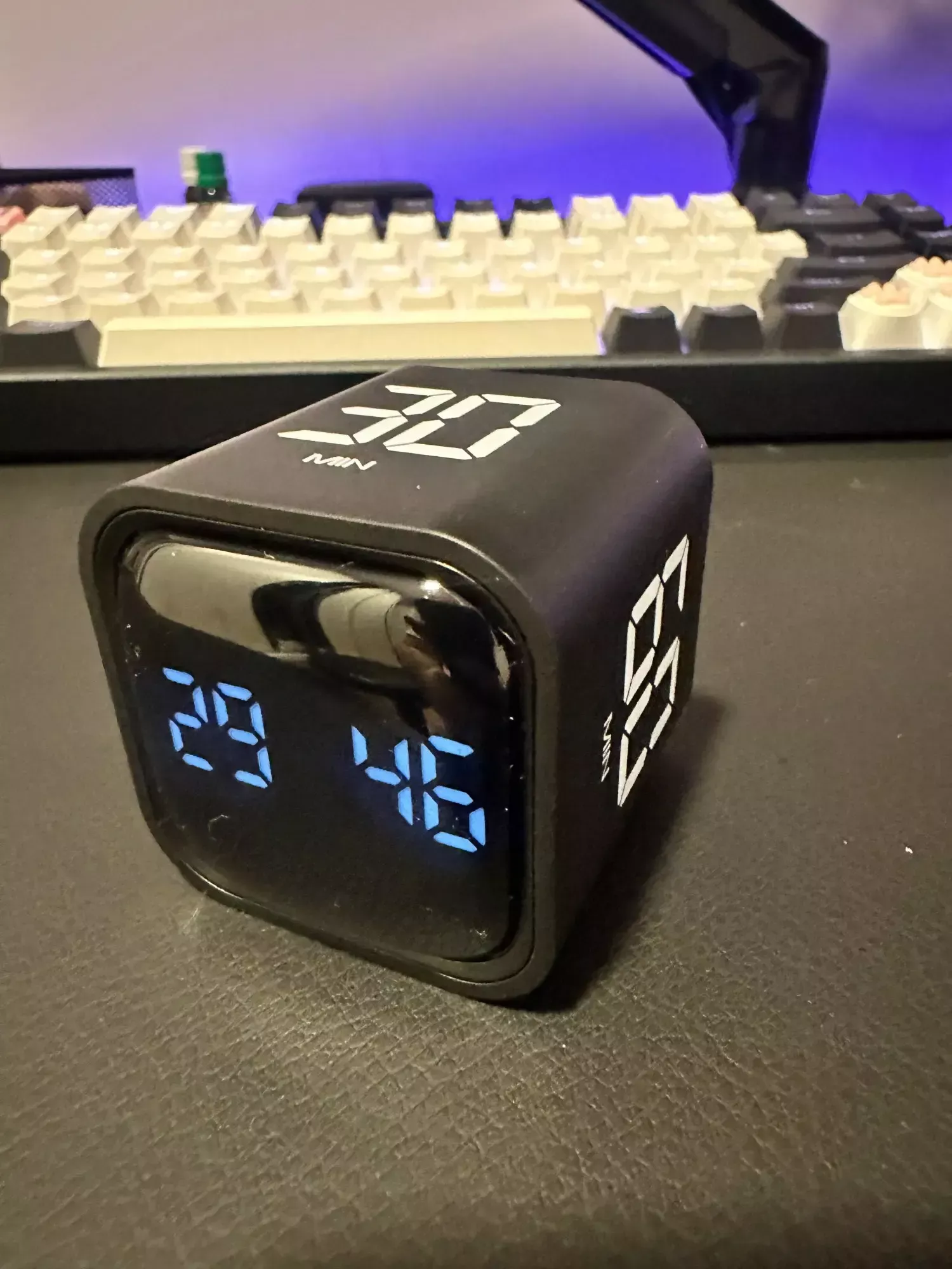 this productivity timer has completely changed the way i manage my tasks. the gravity sensor is really neat; you just flip it to start the timer, which makes it super easy to use. the LED display is clear and bright, so it's easy to see how much time you have left. i've been using it for everything from work tasks to cooking and even exercise. it's lightweight and portable, so i can take it anywhere. the battery life is impressive too, lasting a long time between charges. overall, it's a simple yet effective tool that has helped me stay on track and manage my time more efficiently. highly recommend it for anyone looking to boost their productivity.