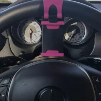 The elasticity at its best perfectly describes this car steering wheel phone mount! My smartphone fits snugly into place without any worry about slipping out or getting scratched due to the protective silicone padding included in its design.